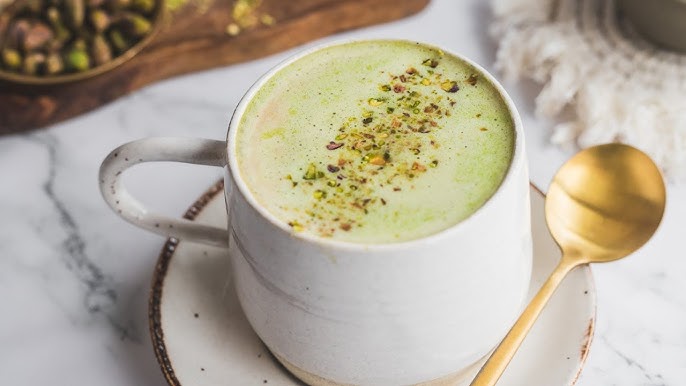 Minuman Latte Pistachio Hangat yang Creamy dan Wangi